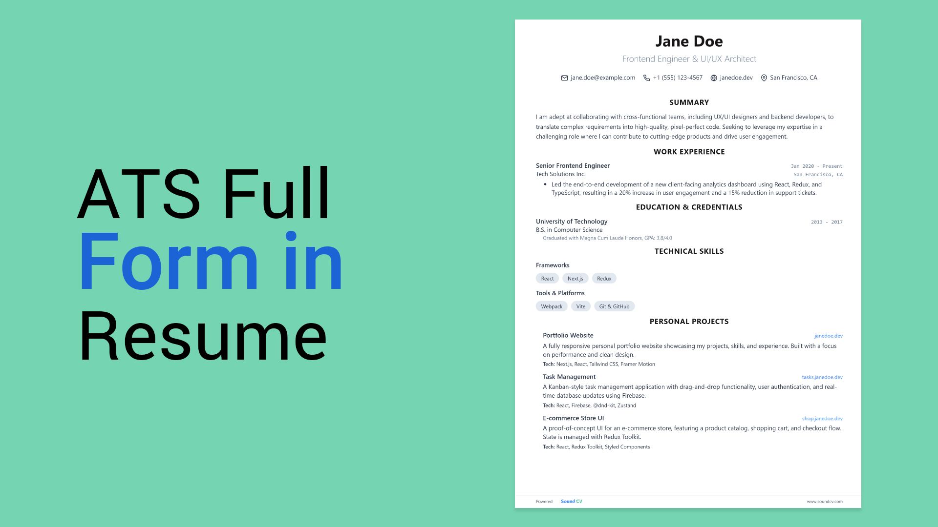 The ATS full form in the resume is Applicant Tracking System.
