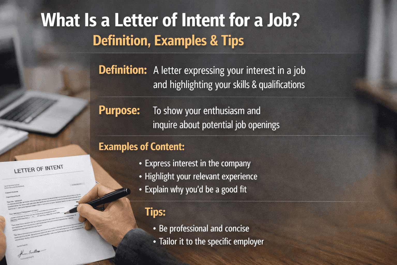 Learn what a letter of intent for a job is, when to use it, and how to write one with examples.