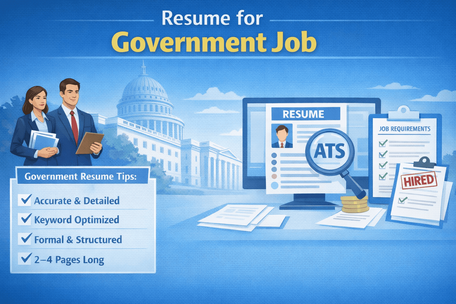 A complete guide to writing an accurate, ATS-friendly resume for government jobs that meets official recruitment standards.