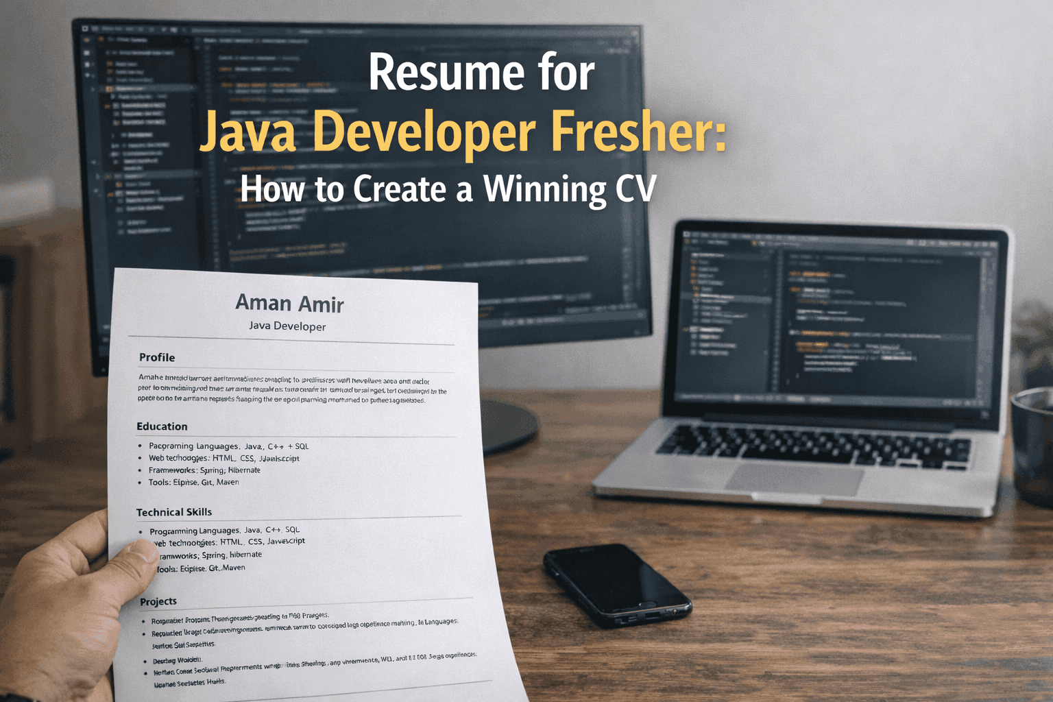 This guide will walk you step by step through creating a winning Java developer fresher resume covering format, skills, projects, examples, and common mistakes to avoid.